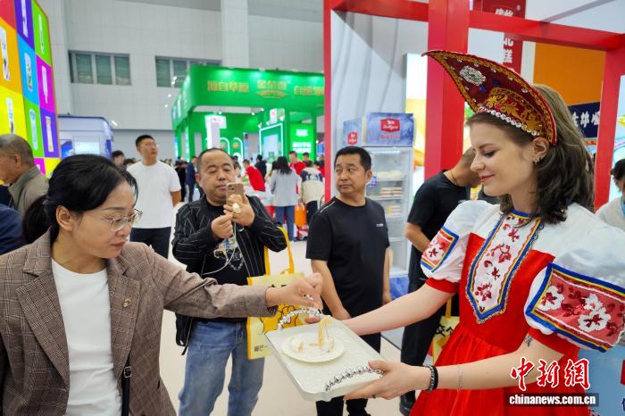 9月24日,天津,推销商正在冰激凌周边产物铺区观光洽商。中新社记者 佟郁 摄