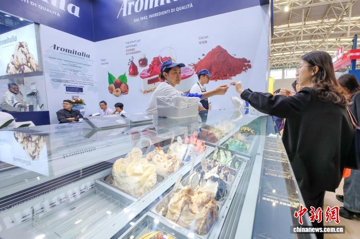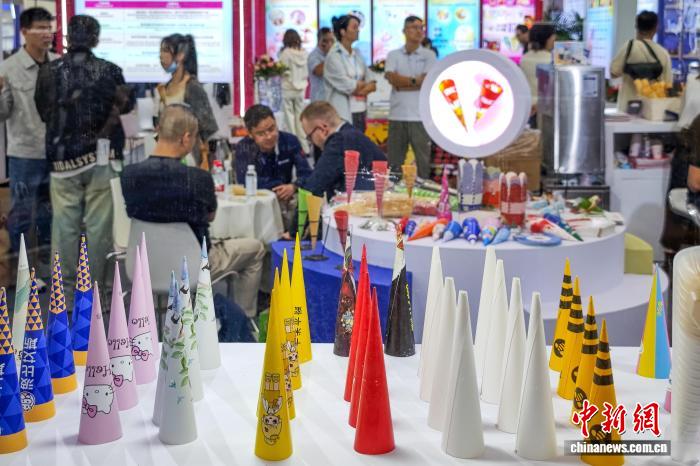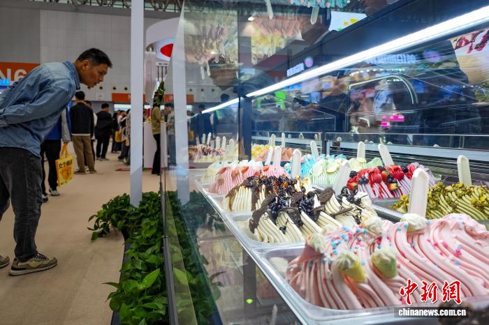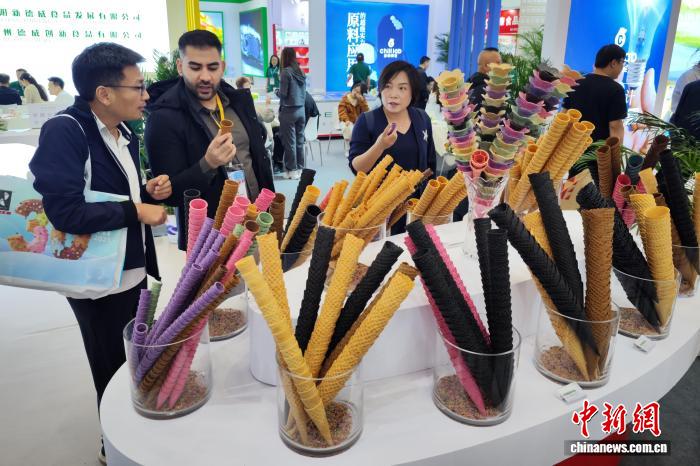 9月24日,天津,推销商正在冰激凌周边产物铺区观光洽商。中新社记者 佟郁 摄
