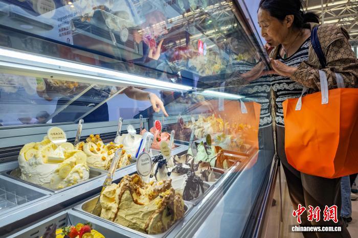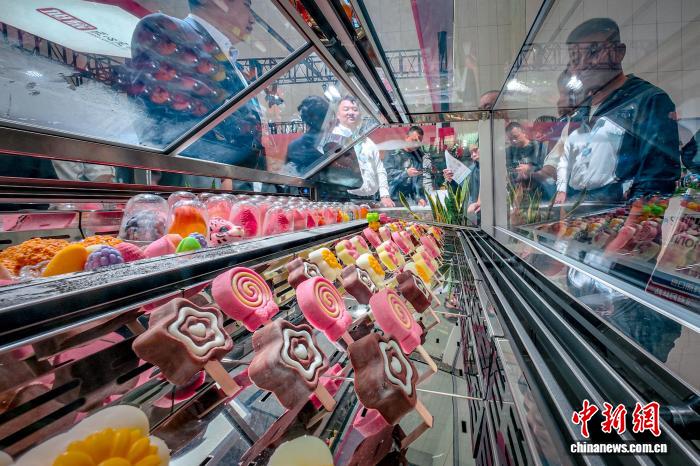 今日天津,外洋推销商观光中原冰激凌产物。中新社记者 佟郁 摄